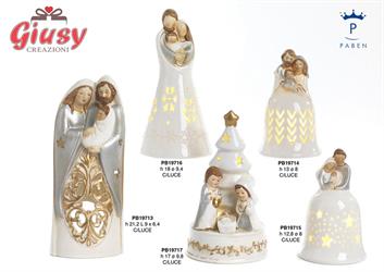 Natività In Porcellana Navel H.9,4 Cm Con Luce Led Completo Di Scatola 1*72