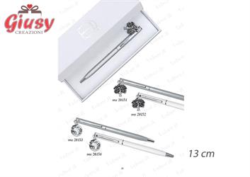 Penna Bianca Con Ciondolo Quadrifoglio Smaltato In Ottone Placcato In Argento 13Cm Completa Di Scatola