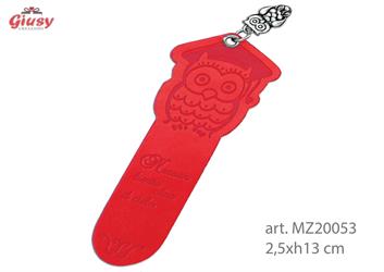 Segnalibro In Pelle Con Ciondolo Gufo In Ottone Placcato In Argento 2,5xh.13 Cm