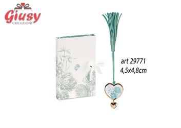 Segnalibro Con Cuore Decoro Decoro Toile De Jouy Color Eucalipto 4,5x4,8 Cm Completa Di Busta 12*72