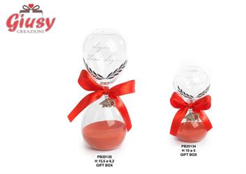Clessidra In Vetro Con Sabbia Rossa h.10 Cm Completa Di Astuccio 1*60
