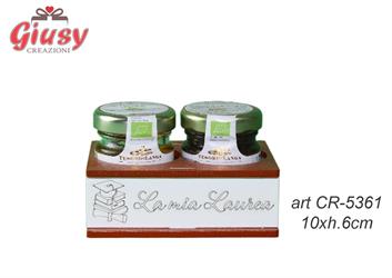 Set Da 2 Portamarmellate "La Mia Laurea" In Legno Color Rosso 10xH.6 Cm Completo Di Marmellate E Di Scatola