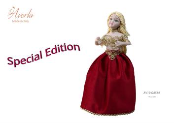 Dama In Piedi In Porcellana Di Capodimonte Vestito Velluto Rosso h.22Cm Completa Di Scatola Cilindrica