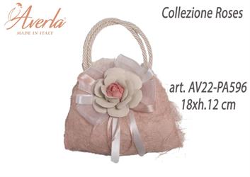 Borsa Grande Con Rosa Grande In Porcellana Di Capodimonte 18xh.12 cm Collezione Roses