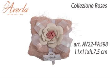 Doppio Cuscino Con Rosa Grande In Porcellana Di Capodimonte 11x11xh.7,5 cm Collezione Roses