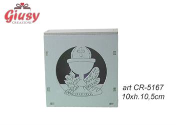 Portafoto Con Calice Comunione In Legno Color Sabbia 12,5xH.14 Cm Completo Di Scatola