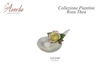 Foglia Con Rosa Thea 12x10 Cm In Porcellana Di Capodimonte Completo Di Scatola Trofeo