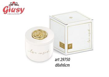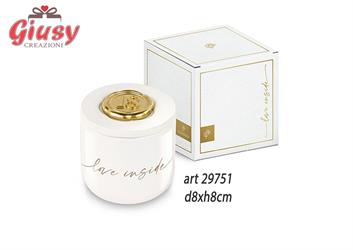 Candela Profumata In Barattolo Di Ceramica Color Bianco Con Cerlacca Con 18 Color Oro d.6xH.6 Cm Completo Di Scatola 1*96