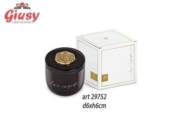 Candela Profumata In Barattolo Di Ceramica Color Nero Con Cerlacca Con 18 Color Oro d.6xH.6 Cm Completo Di Scatola 1*96