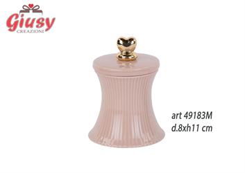 Barattolo In Porcellana Decoro Plisse Rosa D.8xH.11 Cm Completo Di Scatola 1*48