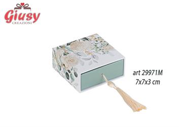 Scatola Degustazione Decoro Blooming Love Con Inserto E Nappina Color Panna 7x7xH.3 Cm 6*288