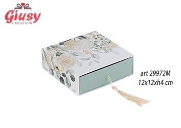 Scatola Degustazione Decoro Blooming Love Con Inserto E Nappina Color Panna 12x12xH.4 Cm 6*192