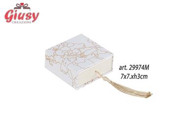 Scatola Degustazione Decoro Mappamondo Con Inserto E Nappina Color Panna 7x7xH.3 Cm 6*288