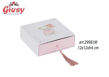 Scatola Degustazione Decoro Orsetta Rosa Con Inserto E Nappina Color Rosa 12x12xH.4 Cm 6*192