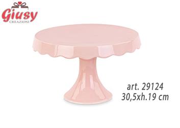 Alzata In Ceramica Rosa Decoro Dolomiti 30,5xh.19 Cm