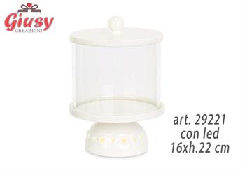 Alzatina Bianca In Ceramica Con Led Diam.30xh.12 Cm 1*4