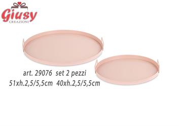 Set 2 Vassoi In Metallo Rosa Con Manici Diametro 40xh.25/55 -51xh.25/55 1*6