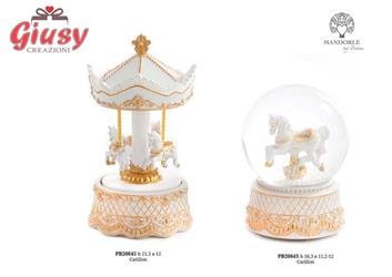Carillon Giostrina Con Cavalli In Resina Color Bianco Con Dettagli Oro H.21,5 Cm 2*8