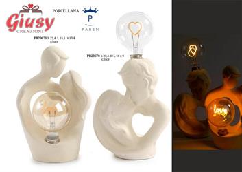 Coppia Innamorati Stilizzati In Porcellana Con Lampada Love In Vetro H.23,4 Cm 1*12