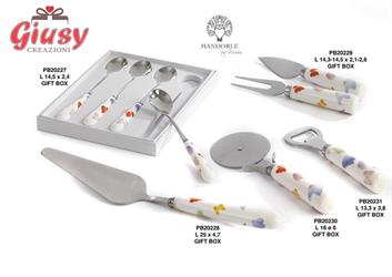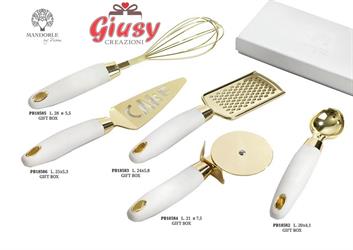 Paletta Per Dolce Color Oro In Metallo E Plastica Bianca Completa Di Scatola, 23,5 Cm 3*36