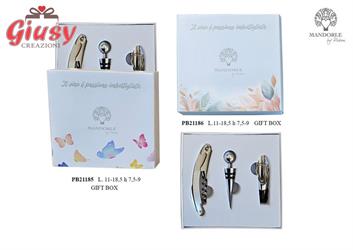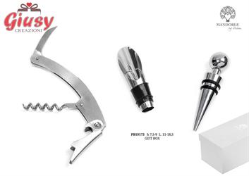 Set 3 Utensili Per Vino In Metallo 11 Cm Completo Di Scatola Con Decoro Floreale 1*48