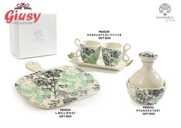 Set Oliera Con Ciotola In Porcellana Decoro Floreale H.9 Cm Completo Di Scatola 1*24
