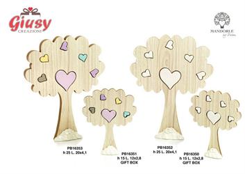 Albero In Legno Con Cuori Colorati In Porcellana 15 Cm Completo Di G.Box 6*60