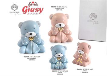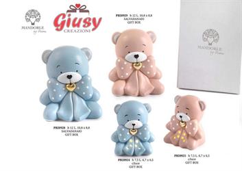 Elefantino Seduto In Resina Celeste Con Corona Oro 2 Soggetti Assortiti H.5,8 Cm 6*144