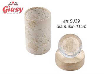 Globo In Vetro Decoro Mappamondo Su Base In Legno Diametro 8xH.11 Cm Con Luce Led Completo Di Scatola 1*18