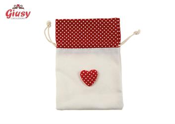 Sacchetto Con Cuore Pois Colore Rosso 10x14 Cm