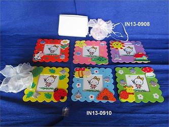 Portafoto Legno Colorato Con Fiore 3 Colori Assortiti Con Scatola E Sacchetto