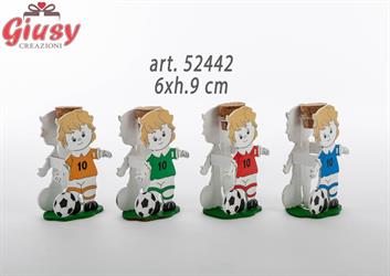 Calciarore In Legno 4 Soggetti Assortiti Con Provetta In Vetro Con Tappo Di Sughero 6xh.9 Cm