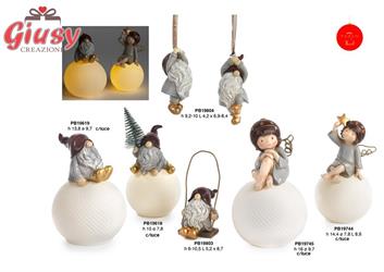 Angelo Spiritoso In Resina Su Sfera In Porcellana Con Luce Led H.16 Cm 3*24