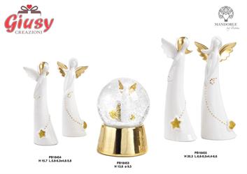 Angelo Spiritoso Con Stella In Resina Su Sfera In Porcellana Con Luce Led H.14,4 Cm 3*24