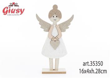 Angelo Stilizzato Con Cuore Oro In Porcellana Con Led 2 Soggetti Assortiti H.28,5 Cm 4*12