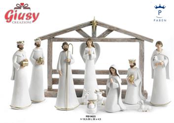 Gruppo Natività Con Capanna Stilizzata In Resina H.14,7 Cm 6*24
