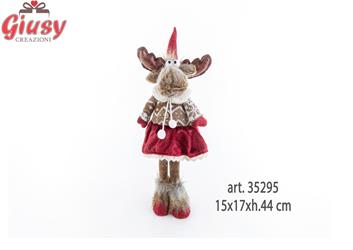Renna Natalizia In Stoffa Bordeaux 2 Soggetti Assortiti H.55 Cm 2*8