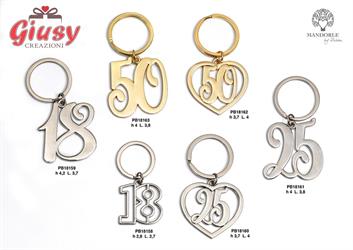Portachiavi Con Cuori Intrecciati E Numero 25 In Metallo H.4 Cm 24*240