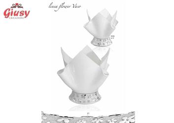Vaso Grande Fiori In Resina Bagno Argento H.24 Cm Completo Di Astuccio