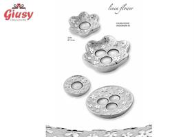 Portacandela Fiore Piccolo In Resina Bagno Argento Decoro Flower Diametro 12 Completo Di Scatola