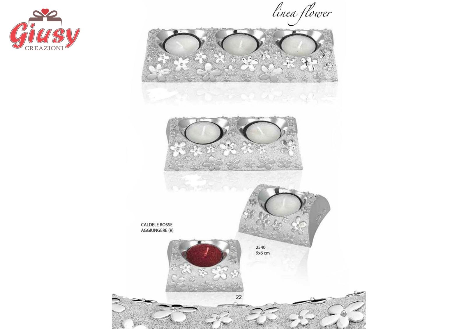 Portacandela Fiore Piccolo In Resina Bagno Argento Decoro Flower Diametro 12 Completo Di Scatola