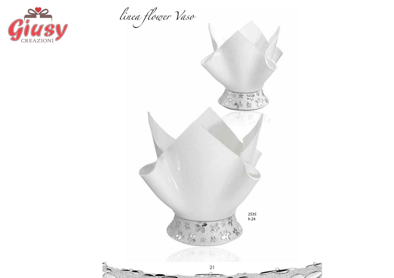 Vaso Grande Fiori In Resina Bagno Argento H.24 Cm Completo Di Astuccio
