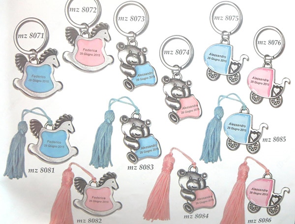 Passeggino Celeste Con Nappina In Ottone Placcato Argento Personalizzabile 3 Cm Con Scatola