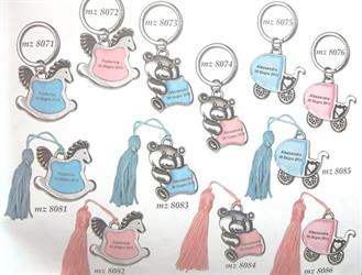 Portachiavi Passeggino Celeste In Ottone Placcato Argento Personalizzabile 7 Cm con Scatola