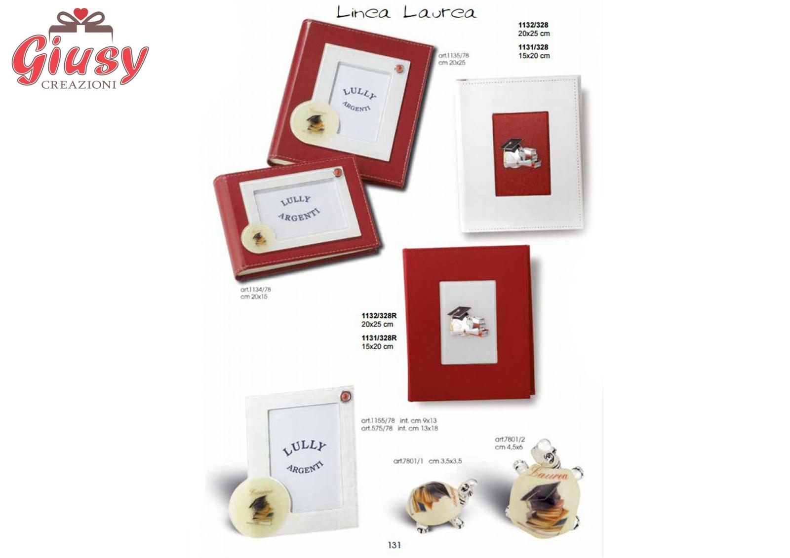 Album Bianco Laurea In Pelle 15x20 Cm Con Placca In Resina Bagno Argento Completo Di Scatola