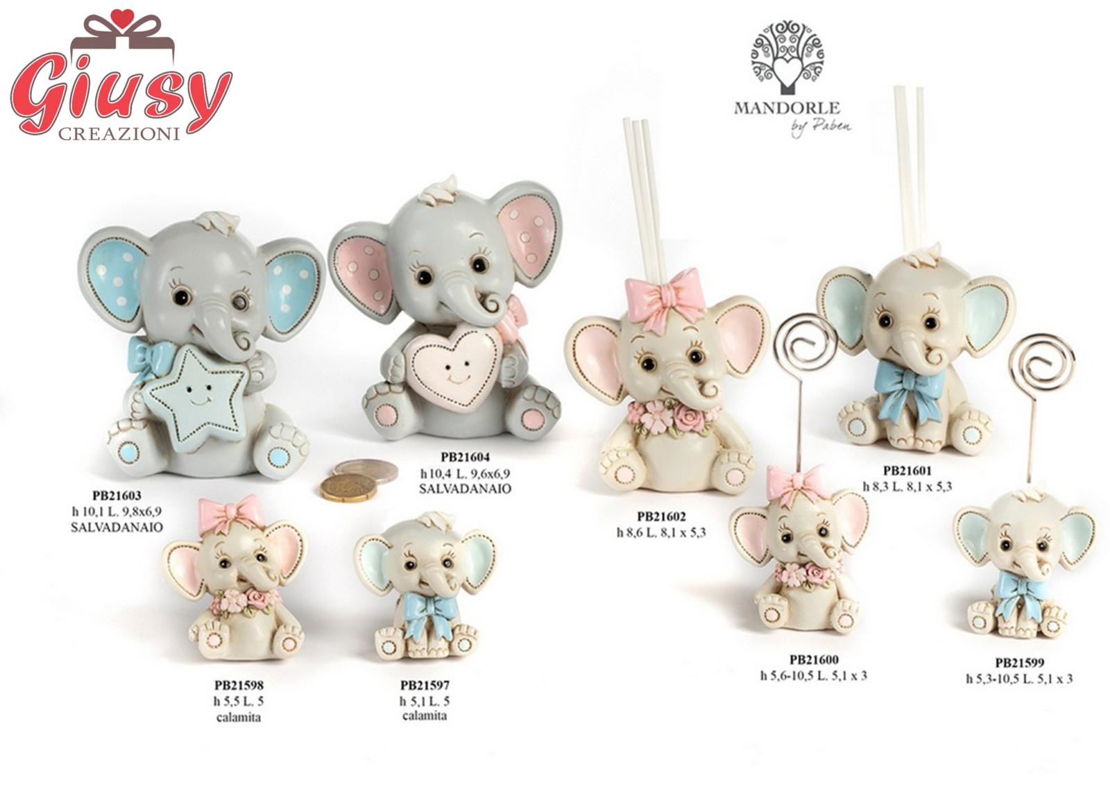 Salvadanio Elefantino Seduto Con Fiocco In Resina, Completo Di Scatola, 10,1Cm 2*36