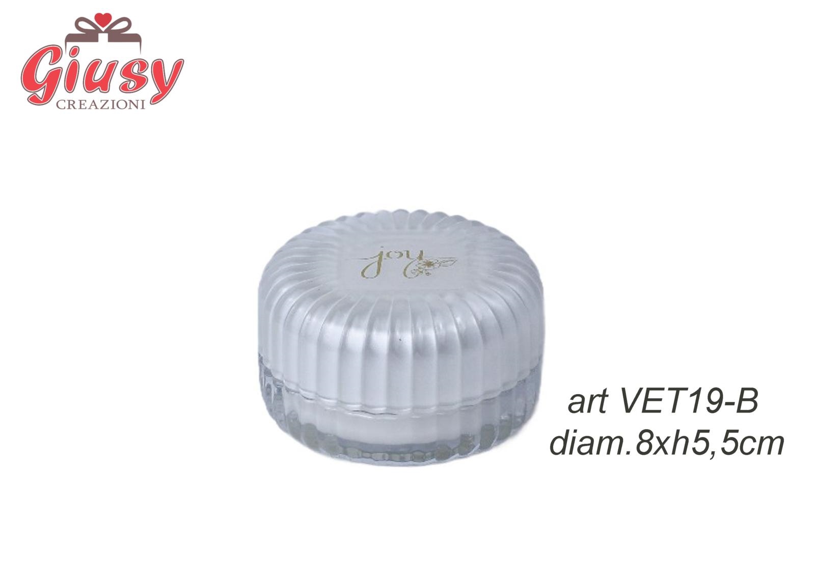 Barattolo In Vetro Color Bianco Con Candela Profumata Diametro 8xH.5,5 Cm Completa Di Scatola 1*48