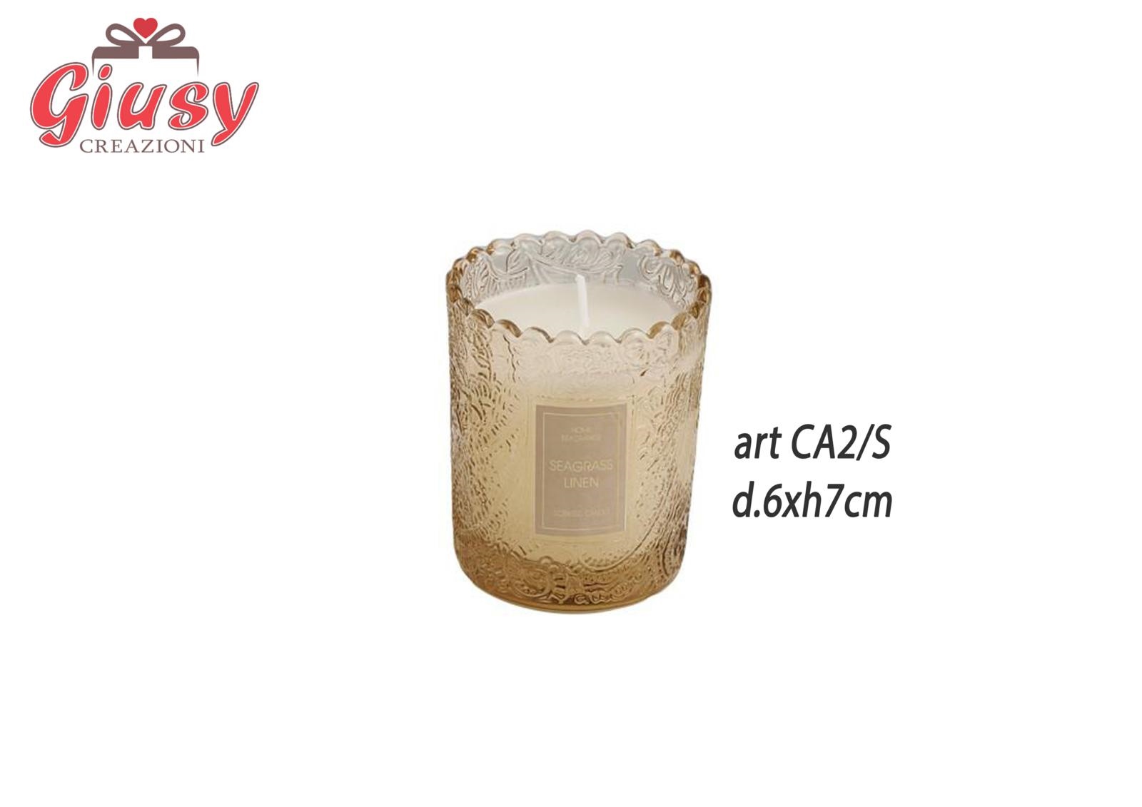 Candela Profumata Con Barattolo In Vetro Color Ambra Diametro 6xH.7 Cm Completa Di Scatola 1*48