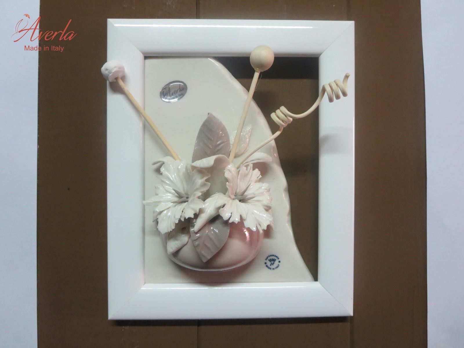 Cornice AVERLA Con Profumatore Cipria Con 2 Fiori Ikebana H.18x15 Cm Con Scatola