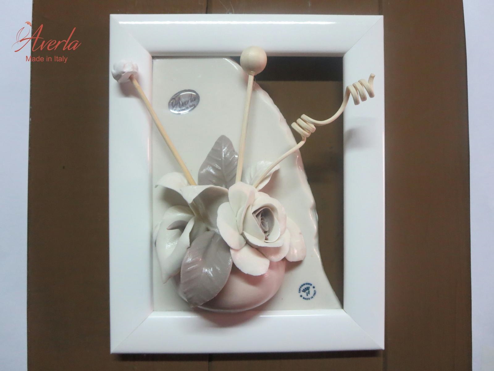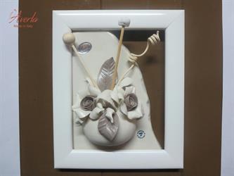 Cornice AVERLA Con Profumatore Bianco Con 2 Rose H.18x15 Cm Con Scatola